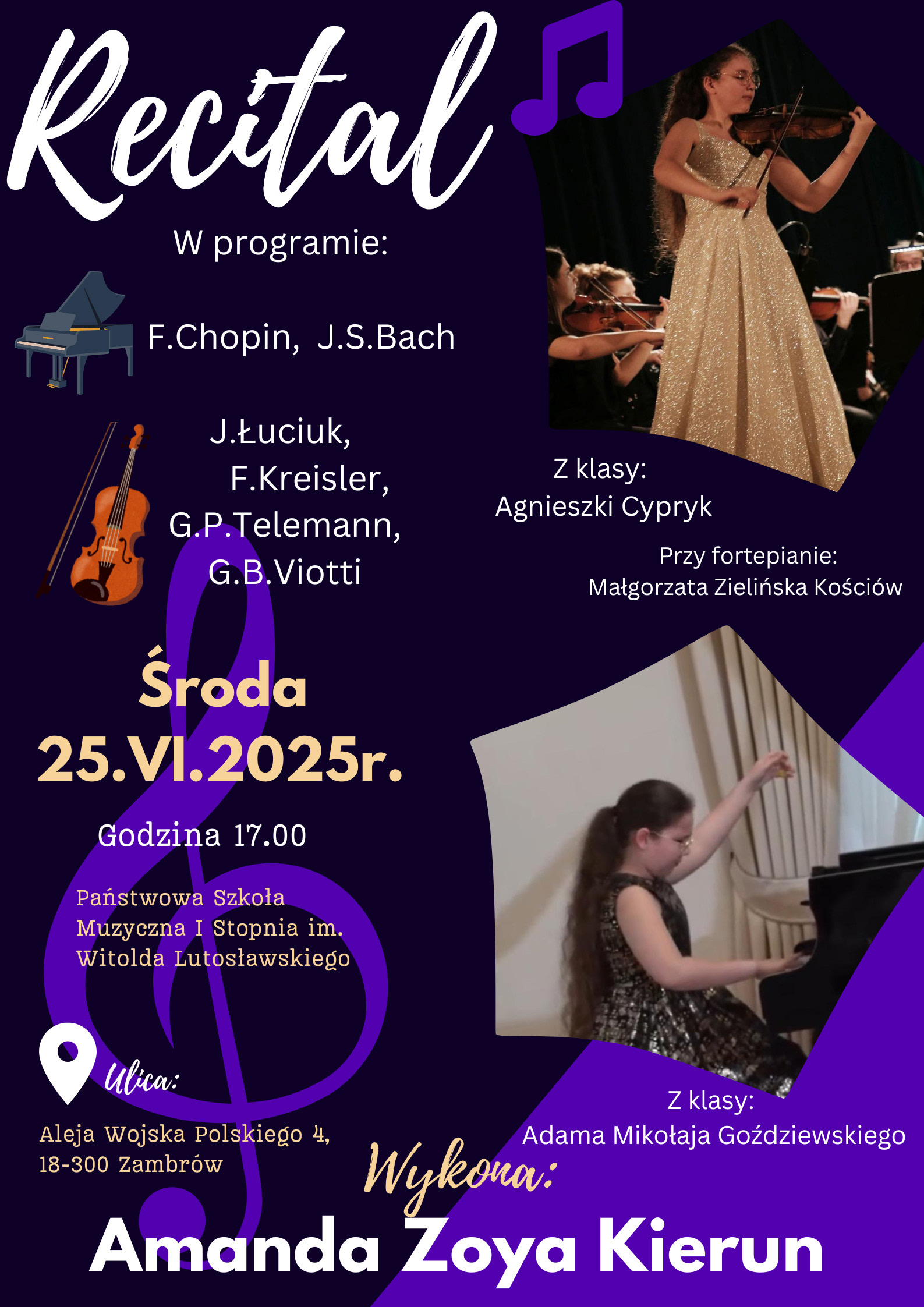 Piano and Violin Recital in Zambrow